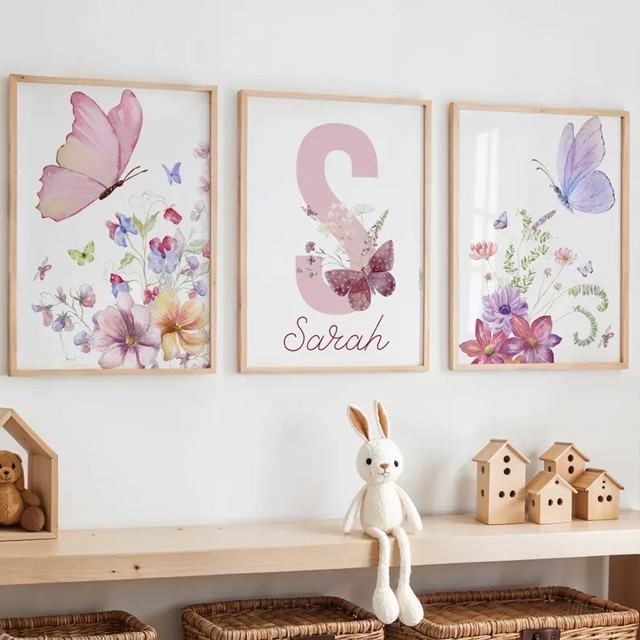 60x30 90x50 120x60 3 Quadros Borboletas Flores Letra S Decoração Para Casa - Não personalizável