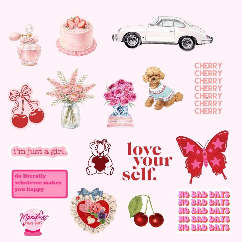 Kit 61 Adesivos Pink Love – Estilo Aesthetic | À Prova d'Água Deixe seus objetos ainda mais estilosos com este kit com 61 adesivos Pink Love, perfeito para quem ama estética feminina, romântica e cheia de personalidade. O kit reúne diversos elementos delicados e modernos em tons de rosa, como laços, borboletas, ursinhos, flores, frases inspiradoras, moda, viagem e referências fashion. Ideal para projetos de colagem, scrapbook, journal e personalização. Produzidos em vinil adesivo resistente e à prova d'água, possuem ótima aderência e podem ser aplicados em diversas superfícies. ✨ Características do produto • Quantidade: 61 adesivos diferentes • Material: vinil adesivo à prova d'água • Tamanho aproximado: 4 a 7 cm • Recorte eletrônico com borda branca • Fácil aplicação 📌 Perfeito para decorar: • Capinhas de celular • Garrafas • Kindle e eletrônicos • Cadernos e planners • Scrapbook e journal • Notebook e laptop • Malas e objetos pessoais Os adesivos são enviados prontos para uso e são ideais para decorar, presentear ou usar em projetos criativos.