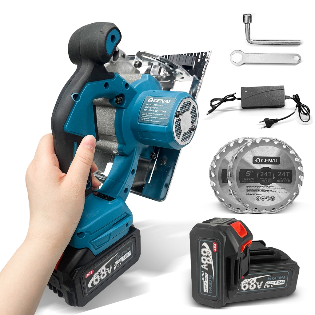 68V Serra Circular Sem Fio Recarregável E Portátil 2 Bateria + 2 lâminas de metal (125mm)