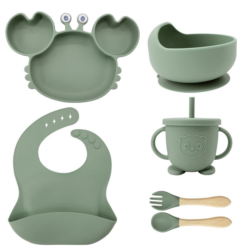 6PCS/kit Caranguejo Conjunto Talheres do Bebê Prato De Jantar De Silicone Para Bebês Com Tigela De ventosa