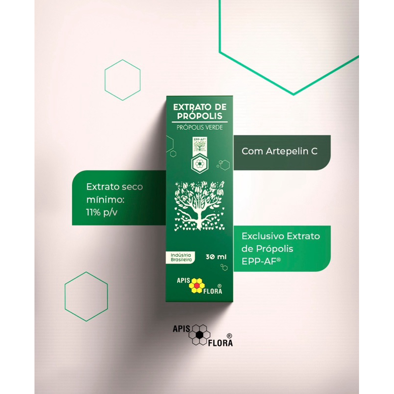 O Extrato de Própolis Verde Apis Flora é fabricado com o extrato padronizado e patenteado da Apis Flora e conta com mais de 100 análises no controle de qualidade. Em sua composição há um extrato química e biologicamente caracterizado, que conta com eficácia e segurança pré-clínica e clínica estabelecidas, garantindo a excelência em termos de produto natural. É livre de contaminantes, autêntico e com a qualidade que seu corpo precisa para usufruir dos benefícios da própolis. Esta substância possui diversas propriedades benéficas ao corpo humano. Entre elas, estão: Anti-inflamatória Antimicrobiana Cicatrizante Antioxidante Imunomoduladora Gastroprotetora Antiobesidade Antitumoral Modo de uso: Diluir 30 gotas em água, suco, mel ou outra bebida de sua preferência.