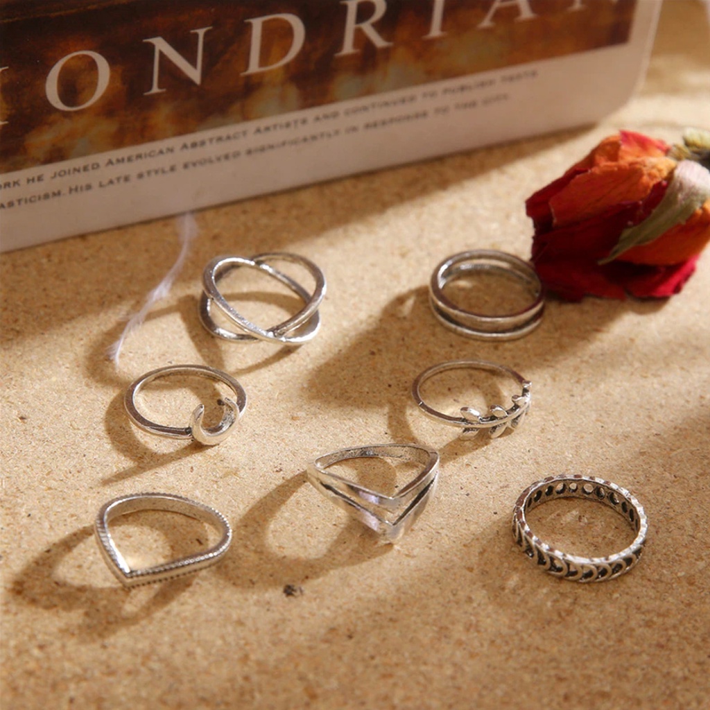 7 Anéis Falange Lua Folhas Detalhes Sorte Harmonia Minimalista