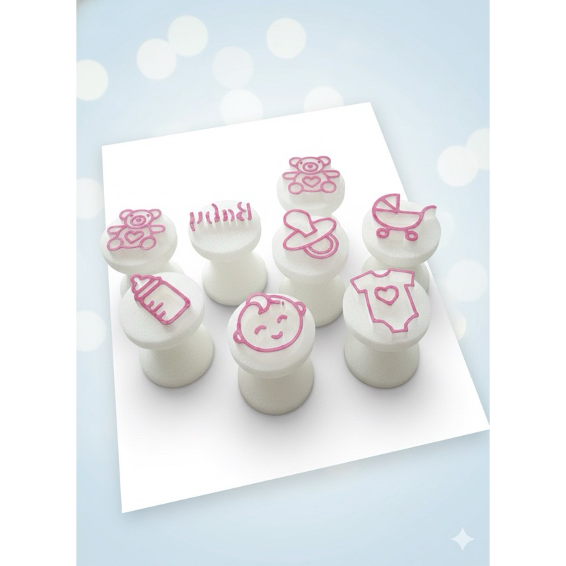 Celebre o Chá de Bebê com docinhos ainda mais fofos e marcantes! Nosso Kit com 7 Carimbos para Docinhos – Tema Chá de Bebê traz desenhos delicados que encantam e combinam com qualquer decoração de festa. Ideal para deixar cada brigadeiro com um toque especial! Produzido com impressão 3D de alta precisão e material PLA (biodegradável, feito à base de milho), o kit é seguro para uso alimentício e muito resistente. Conteúdo do Kit: 7 carimbos com os seguintes desenhos: • Mamadeira • Rostinho do bebê • Ursinho • Chupeta • Roupinha de bebê com coração • Carrinho de bebê • Palavra "BABY" Dimensões Aproximadas: • Tamanho dos desenhos: entre 1,5 cm e 1,8 cm • Base inferior (sem relevo): 3 cm de altura x 2 cm de diâmetro Indicação de uso: Ideal para docinhos entre 12g e 18g. Pode ser usado com brigadeiros, pasta americana, pasta de leite em pó, biscuit e outras massas similares. Cor do produto: A cor será enviada de forma sortida, de acordo com o estoque (não é possível escolher). Postagem rápida e segura: O envio é feito em até 24h úteis após a confirmação do pagamento. Enviamos para todo o Brasil com embalagem reforçada. Cuidados com o produto: Lave com água fria e detergente neutro Use escova de cerdas macias Não utilizar com alimentos quentes Evite exposição a temperaturas acima de 40°C