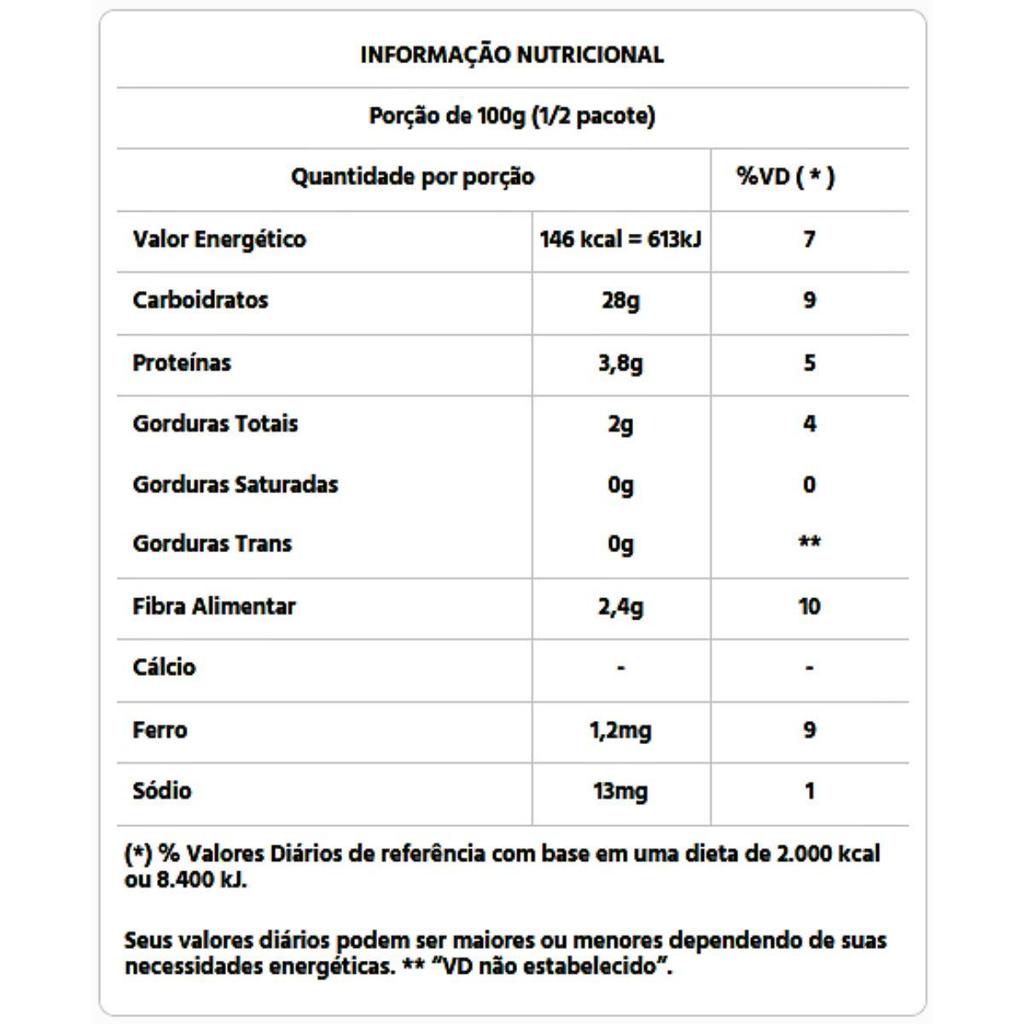 Aliado para uma refeição rica em nutrientes, o 7 GRÃOS ORGÂNICO VAPZA vai te conquistar. O equilíbrio entre os grãos traz leveza e muito sabor, ideal para incluir na sua rotina. Todos os grãos são cozidos no ponto certo para você abrir a embalagem e incorporar na sua receita. Contém glutén? NãoInfo. complementar alérgicos: Pode conter castanha e gergelim.Prazo de validade: Até 12 (doze) meses, após data de fabricação. Para lote disponível, consulte-nos.Condições de armazenamento: Armazenar em temperatura ambiente (até 30ºC) em local seco e arejado. Não consumir se a embalagem plástica estiver danificada. Após aberto, manter sob refrigeração e consumir em, no máximo, 2 dias ou congelar por até 1 mês.