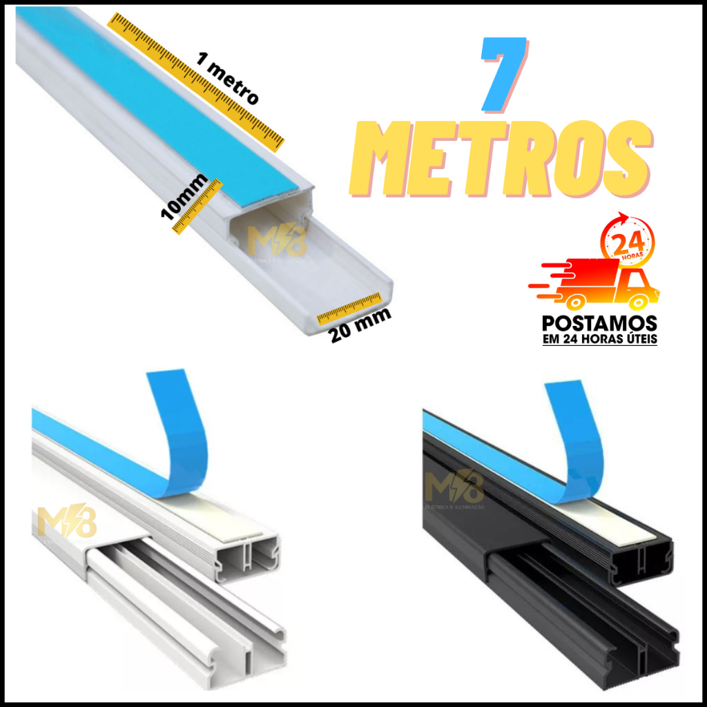 | 7 Metros Canaleta Organizador de Fios 20x10mm Sistema X Com Fita Ad... este produto | R$ 31,90 | — | 4.9/5 | 5 |