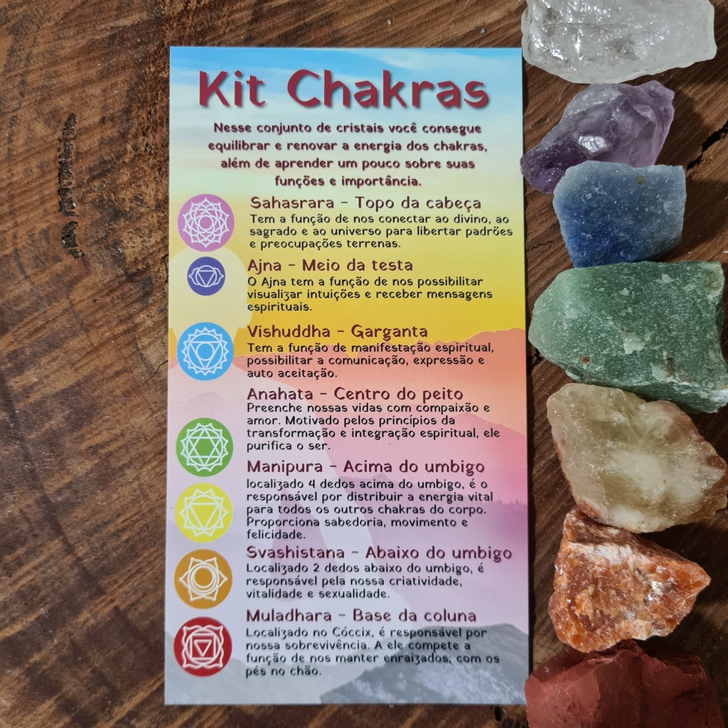 7 Pedras Chakra Bruta - Cristal, Ametista, Quartzo Azul, Quartzo Verde, Citrino, Calcita Laranja e Jaspe Vermelha