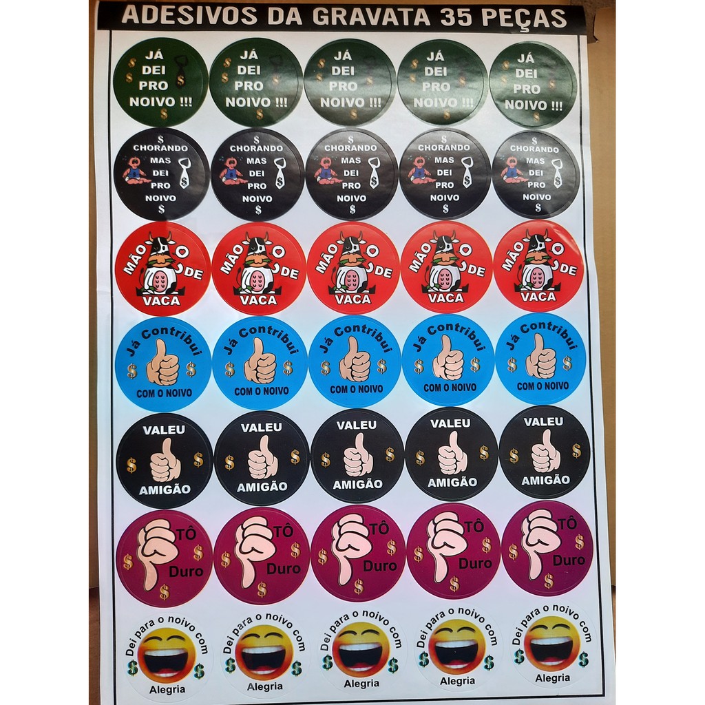 70 adesivos hora da gravata (2 cartelas)