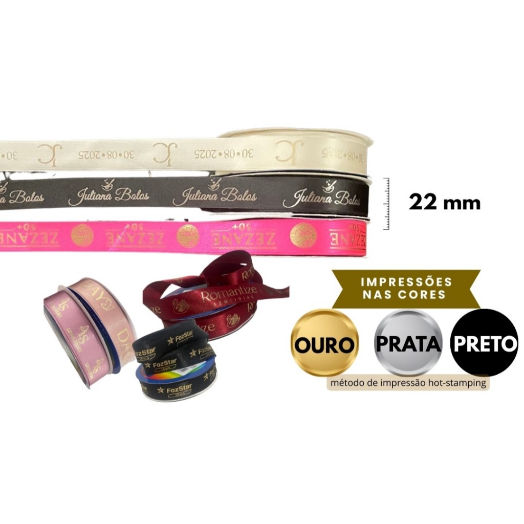****ESCOLHER A COR DA FITA APÓS A COMPRA! ENVIE SUAS INFORMAÇÕES COMPLETAS NO CHAT! IMEDIATAMENTE APÓS A COMPRA**** Aqui você encontra produtos de qualidade e personalização impecável para valorizar a sua marca e encantar seus clientes. Largura: 15mm Comprimento:70 metros cada unidade Formato: Rolo Composição da Fita: 100% Poliéster Najar Tipo: Personalizada impressão hotstaing Ouro, prata ou preto Como funciona a personalização: – Após o pagamento, entrar em contato pelo chat para que você informe a cor da fita desejada, cor da impressão podendo ser Ouro(dourado), prata ou preto, e envie a sua logo – Caso não tenha a logo pronta, AJUDAMOS A CRIAR SUA ARTE, arte simples para a personalização da fita com logo, frase, telefone, conforme desejar. – É fundamental enviar a logo após realizar a compra para que possamos iniciar o processo de layout digital e em seguida confeccionar. - O envio é conforme informado e é de extrema importância atenção ao chat, a nossa agilidade depende da sua atenção! Já envie a cor da fita, porém quero mudar posso? Pode sim, mas as cores em estoque são limitadas e enviamos as opções disponíveis para troca de cor. Recomendamos pedir fotos das cores de fitas para sanar duvidas escolher a cor que mais gostar, pois as cores em estoque são limitadas. Por que escolher a nossa fita de cetim personalizada: – Ideal para valorizar embalagens de presentes, produtos e lembrancinhas – Dá mais identidade e profissionalismo à sua marca – Acabamento sofisticado e impressão de alta qualidade – Ótima durabilidade e resistência Quem usa e qual ocasião: Lojistas, casamentos, bem casados, debutantes, chá de bebê, chá revelação, aniversário, lembrancinhas, bolos e doces, embalagens e embrulhos, etiquetas, acabamentos, festas, formatura, marcado de página, marcador de bíblia, laços, enfeites e o que sua criatividade mandar. Crie sua fita personalizada! Informações importantes ATENÇÃO: Enviar todas as informações COMPLETAS que vai ser personalizado na fita em até 3 dias, caso contrário não será possível a confecção e na falta de comunicação no chat enviamos um comunicado ao seu endereço Enviamos a prévia digital: caso não tenha resposta no chat com ok para produzir, seu pedido entra em produção após 12 horas do envio da prévia conforme as informações já envidas por você. - Fricção pode danificar a fita - Não é lavável - Não recomendado para etiquetas de roupas. - Impressão APENAS em Ouro (Dourado), Prateado ou Preto - CORES das FITAS conforme a tabela de cores do anúncio, consultar disponibilidade. Ficou com alguma dúvida? Estamos à disposição para ajudar, Faça quantas perguntas forem necessárias, estamos preparados para melhor te atender! aguardamos seu pedido!!!
