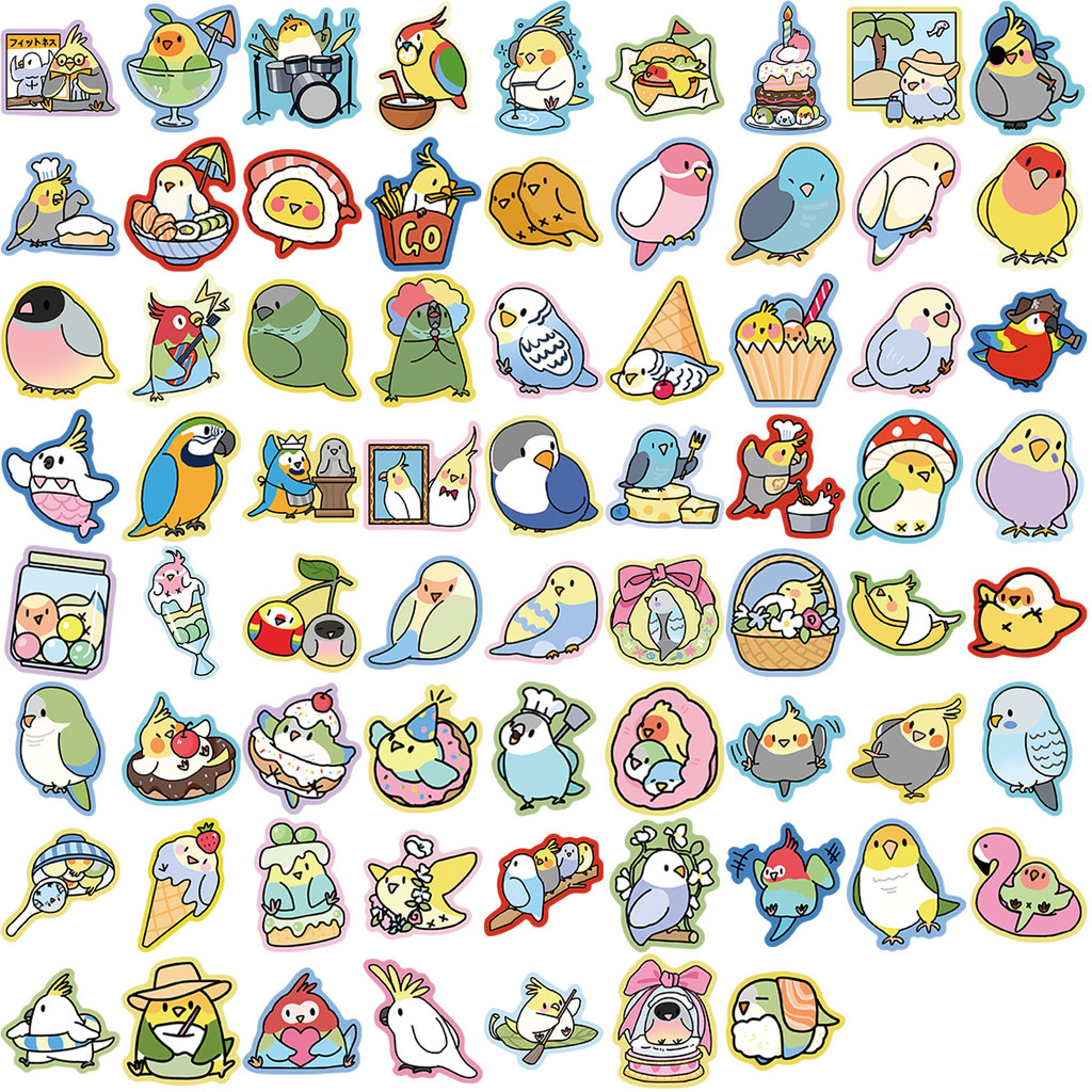 70 Peças Adesivos De Graffiti De Papagaio De Borda Colorida De Desenho Animado-Decoração DIY À Prova D'água Para Guitarr