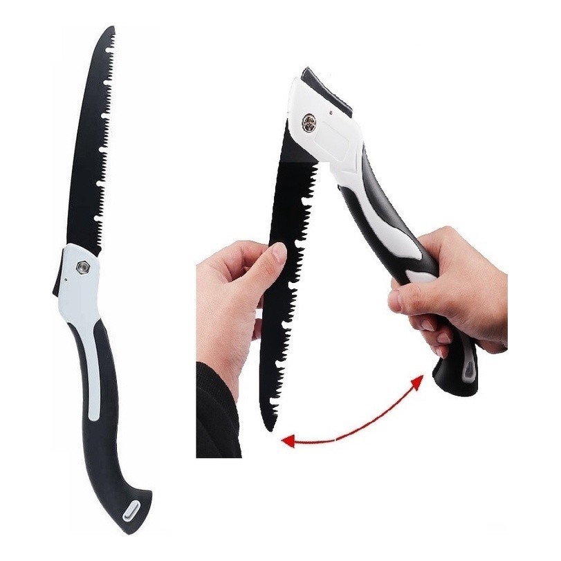 Serra Dobrável para Poda de Galhos com Serra de 31 cm PRONTA ENTREGA Eficiência e durabilidade! Esse serrote dobrável é próprio para realização de podas com cortes agressivos de plantas e árvores de pequeno e médio porte. Prático e seguro, facilmente transportado para áreas de mata para realização de atividades mateiras e brushcraft. A Serra Articulável é feita com material de Aço duro, produto de excelente qualidade, seus dentes já vem afiados pronto para o trabalho duro. Características Técnicas do Produto: Material: Aço especial Tamanho Total: 60 cm Tamanho da serra fechada: 39 cm Tamanho da Lamina: 31 cm Material do Cabo: Plástico emborrachado. Outras Características: 1. Três superfícies de corte para cortar até 50% mais rápido do que as serras manuais tradicionais. 2. Feito de lâmina de aço 65mn totalmente endurecido e tpr aperto de conforto 3. As dobras da lâmina no punho são emborrachadas, para o armazenamento e o fácil e seguro transporte. 4. Trava de Segurança - Apenas ao apertar a trava a Lamina é Liberada para a posição de uso. 5. Ideal para jardinagem, poda, aparar, serrar, acampar, caminhadas, Brushcraft, caça e corte de madeira, osso e muito mais. Todos os nossos produtos são novos, acompanham nota fiscal, que é enviada juntamente com a sua compra / via sistema do ML. Acompanha o produto: - Serra Dobrável - Nota Fiscal