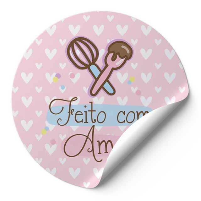 72 Adesivo Decorativo 4Cm Rotulos Autocolante Confeitaria Feito Com Amor Rosa Corações Brancos aparece na subcategoria Etiquetas e Adesivos (de Papelaria) na Shopee Brasil por R$ 14,90.