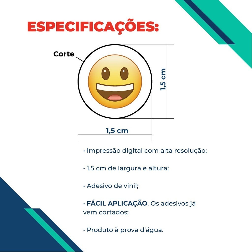 720 Adesivos Carinhas Felizes Emojis Adesivos para caderno Adesivo Escolar Infantil Seja bem vindo a nossa loja Abra Decor, empresa especializada em soluções para sinalização, segurança e decoração de ambientes. • 720 adesivos de vinil no formato 1,5x1,5 cm; • 16 cartelas com 45 adesivos cada; • Fabricação própria; • Impressão eco solvente; • Alta durabilidade; • Adesivo vinil com impressão digital em alta resolução; • Fácil aplicação e manuseio: Adesivo já recortado.