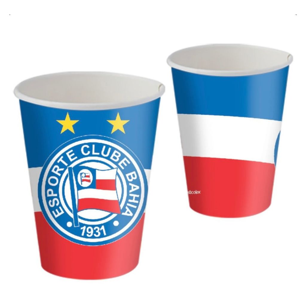 COPO PAPEL 200ML TEMA: BAHIA OFICIAL PODE SER UTILIZADOS EM DECORAÇÃO DE FESTAS E IDEAL PARA SERVIR BEBIDAS. COM UMA EXCELENTE QUALIDADE!! MARCA: FESTCOLOR PRODUTO LICENCIADO!