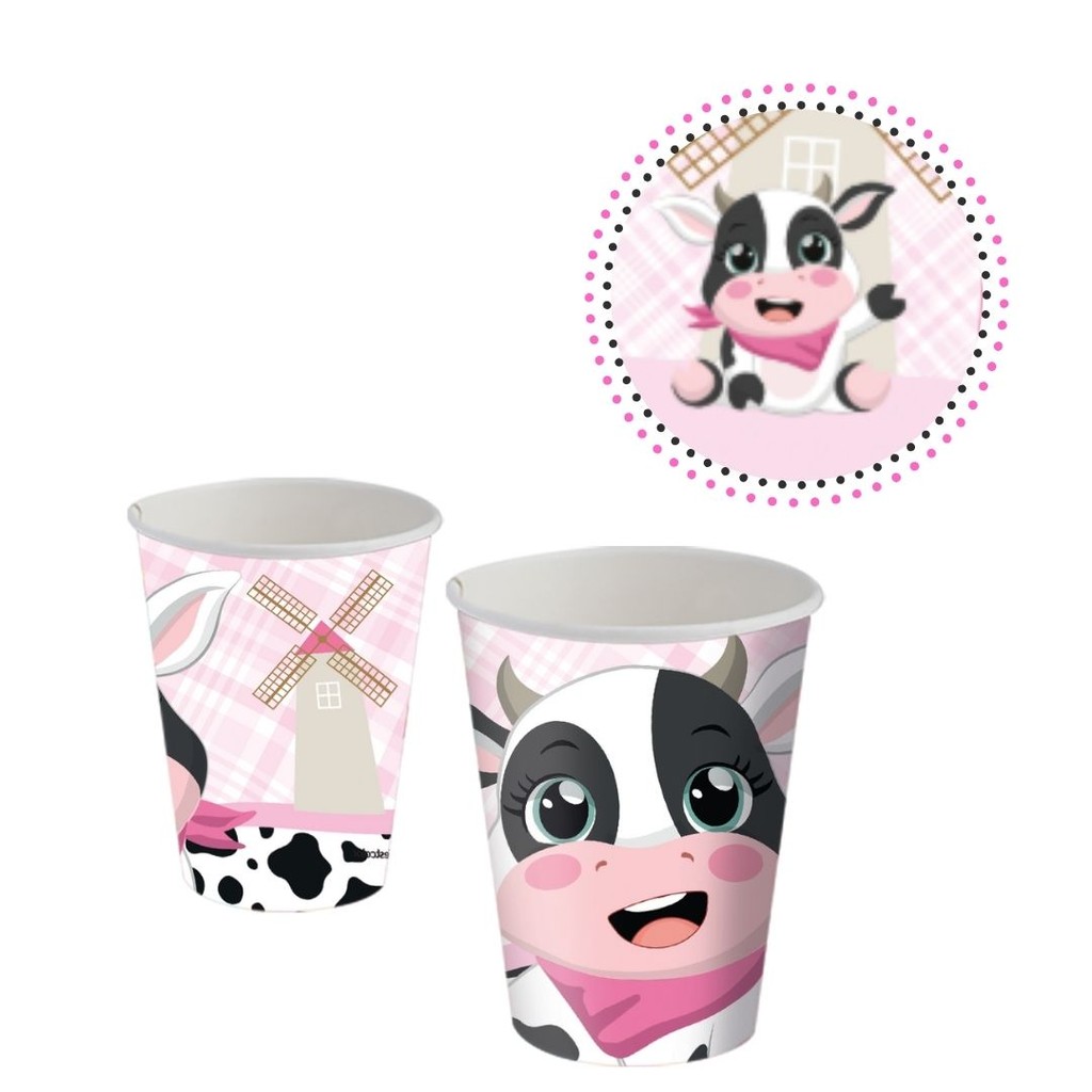 8~32 COPO PAPEL FESTA VAQUINHA FAZENDINHA ROSA 200ML FESTCOLOR