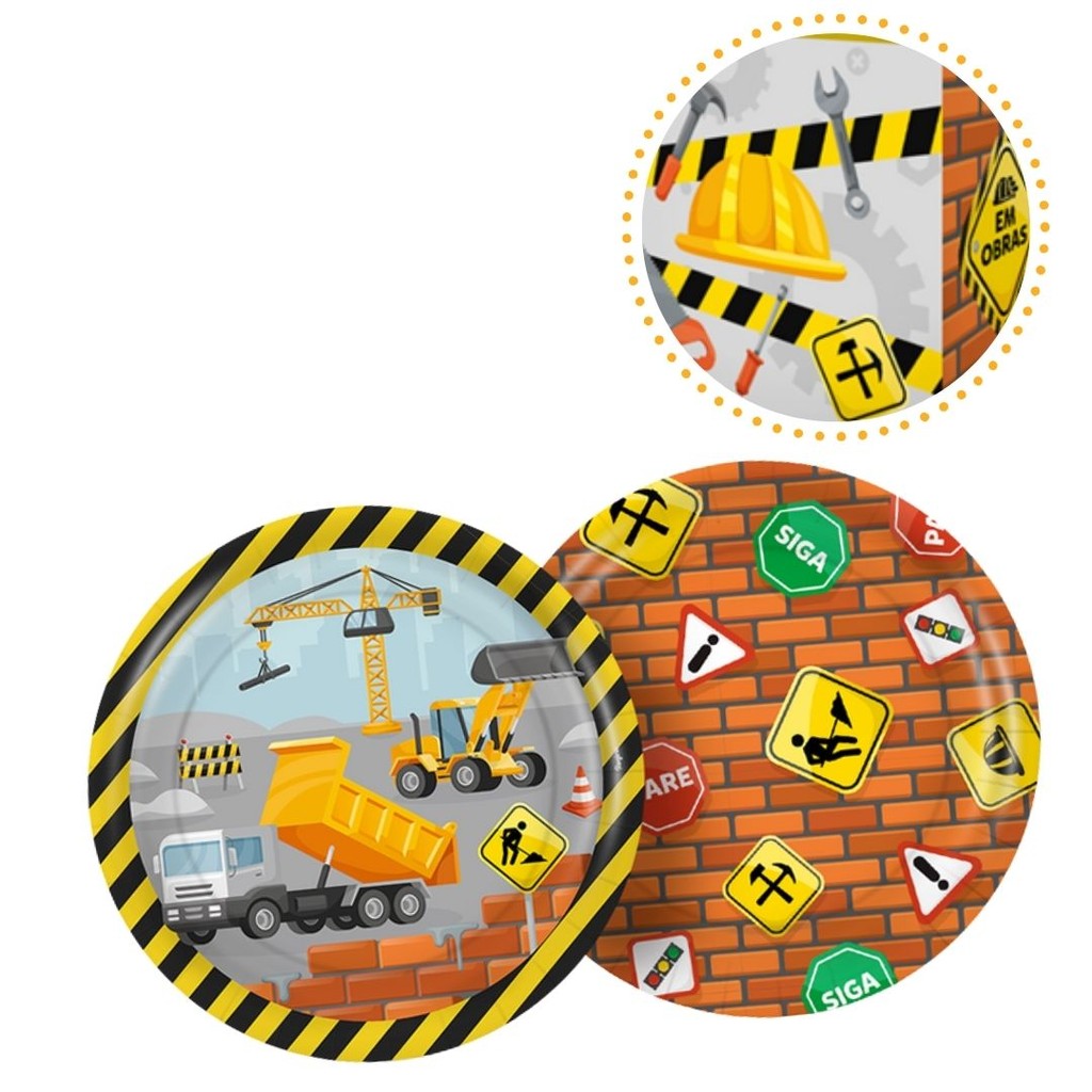 8~32 PRATO FESTA CONSTRUÇÃO DE PAPEL 18 CM REGINA