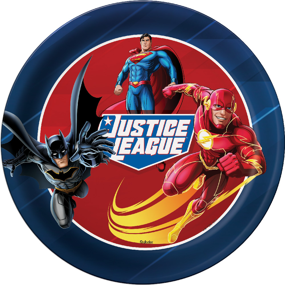 PRATO LIGA DA JUSTIÇA MEDIDAS: 18 CM PRATOS PARA BOLO E DECORAÇÃO DE FESTA COMPOSIÇÃO: PAPEL FABRICANTE: FESTCOLOR PRODUTO LICENCIADO!!!