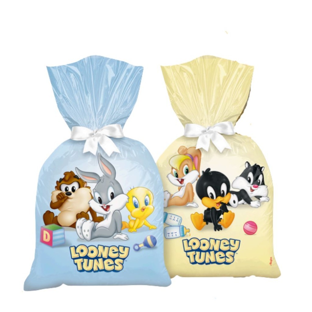 Encante os convidados da sua festa com a Sacola Surpresa Looney Tunes. Perfeita para embalar lembrancinhas com muito charme e diversão, essa sacolinha traz os adoráveis personagens baby do universo Looney Tunes, como Pernalonga, Piu-Piu, Taz, Frajola e muitos outros. Feita com material resistente, ideal para doces, brinquedos e mimos da festa. Ideal para festas infantis com o tema Baby Looney Tunes. Produto original e licenciado, garantindo qualidade e autenticidade na sua decoração! 📦 Contém: 08 sacola 📐 Tamanho aproximado: 14 X 27 cm 🎉 Ideal para: lembrancinhas de festas infantis, chás de bebê e aniversários temáticos Leve mais alegria e fofura para o seu evento com essa linda sacola surpresa!