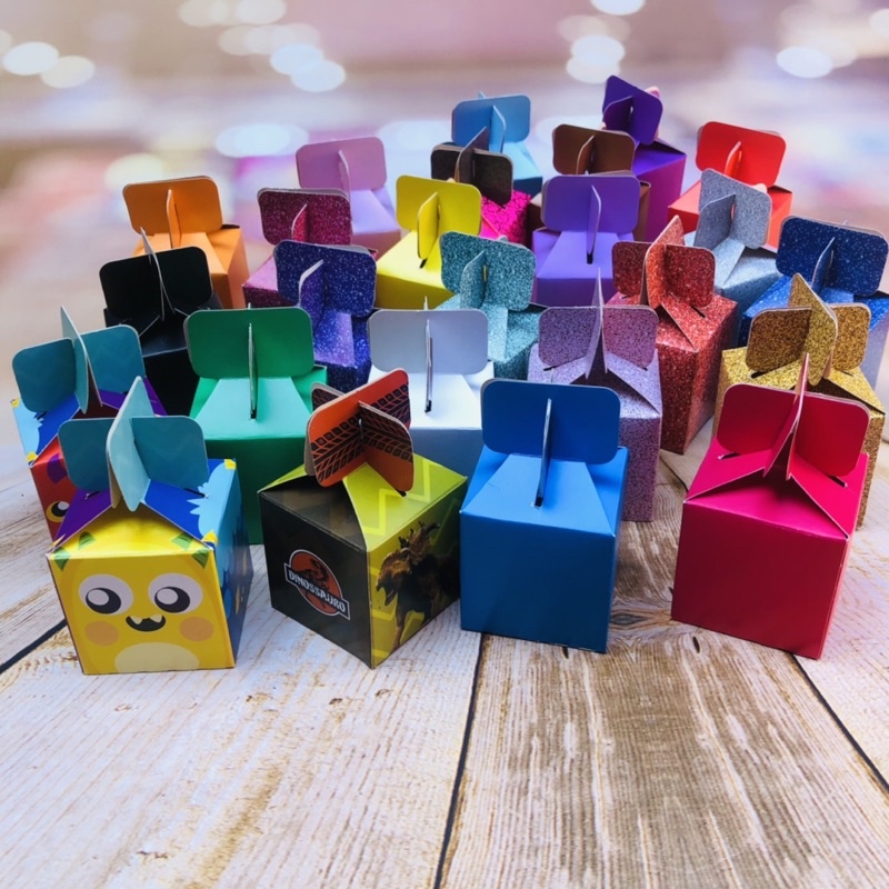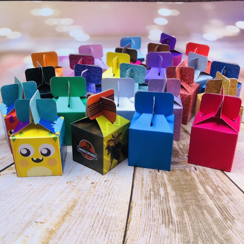 caixa lembrancinha doces festas infantil cores e temas largura 5 cm comprimento 5 cm altura montado 8 cm altura da caixa 5 cm composição papel cartão 250 gramas impressão digital