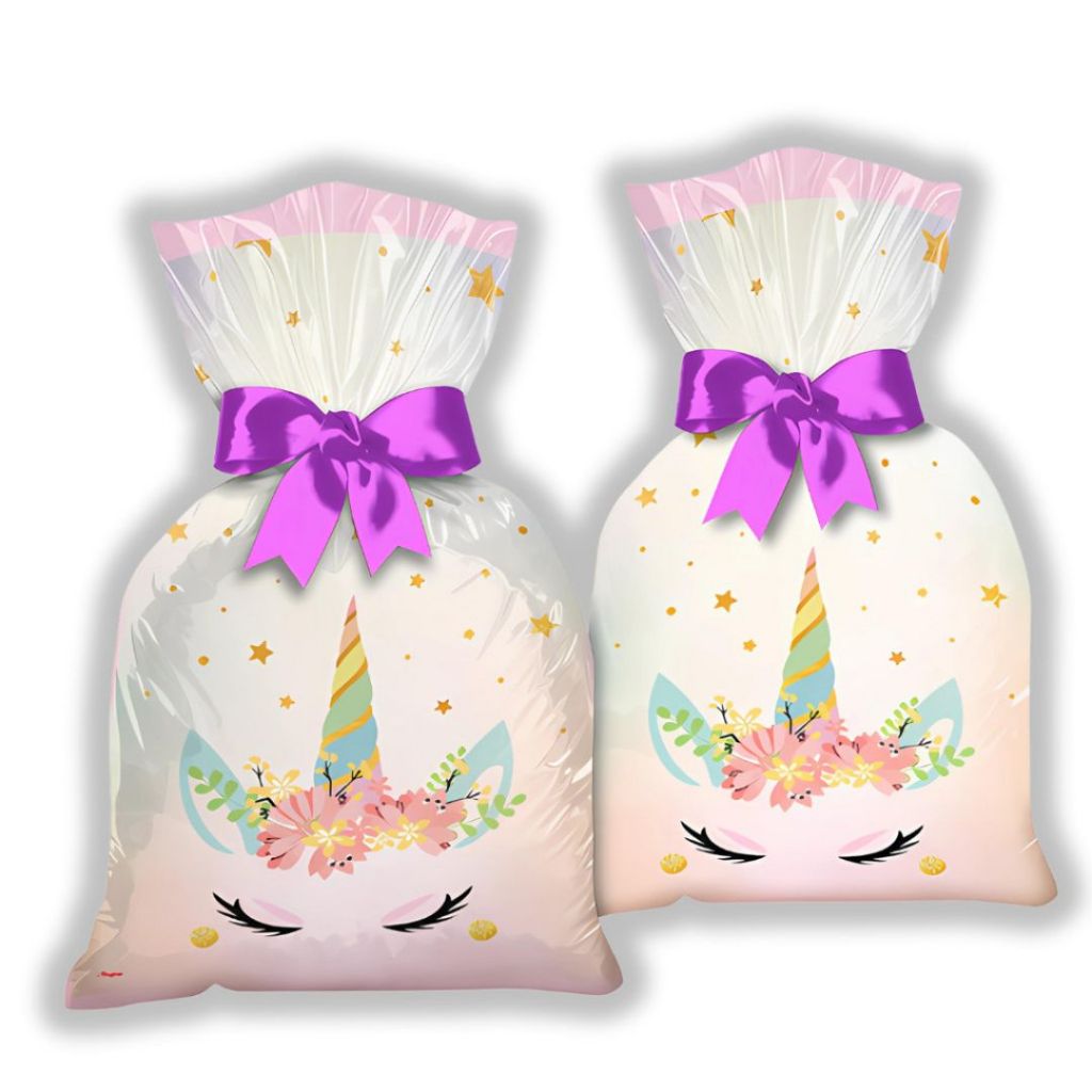 SACOLA SURPRESA FESTA UNICORNIO P/ LEMBRANCINHAS, PRODUTO LICENCIADO MEDIDAS: 14 X 27 cm MATERIAL: PLASTICO FABRICANTE: REGINA SACOLINHAS PLÁSTICAS COM LINDA ESTAMPA DE "UNICORNIO 2 ", PERFEITAS PARA DEIXAR AS LEMBRANCINHAS DA SUA FESTA AINDA MAIS ESPECIAIS. IDEAL PARA FESTAS INFANTIS COM TEMA DE UNICÓRNIOS ! ENTRE EM CONTATO CONOSCO E DESCUBRA OUTROS TEMAS DA SACOLA SURPRESA PARA FESTA !!!