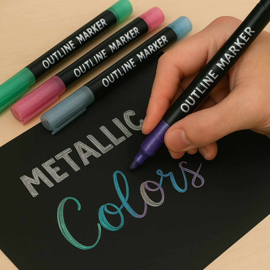 8 Canetas Marcador Outline Efeito Dual Color Caneta Brush Lettering Caneta Metalizada Marca Texto