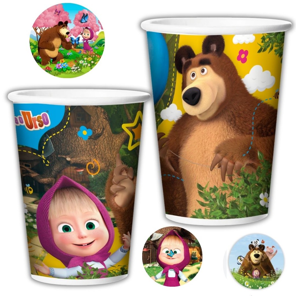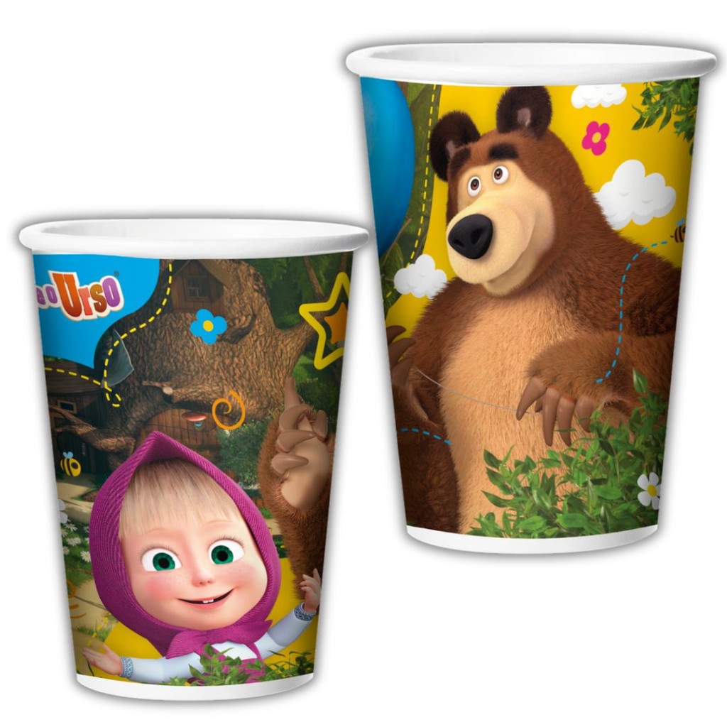 COPO PAPEL 180ML TEMA: MASHA E O URSO PODE SER UTILIZADOS EM DECORAÇÃO DE FESTAS E IDEAL PARA SERVIR BEBIDAS. COM UMA EXCELENTE QUALIDADE!! MARCA: REGINA PRODUTO LICENCIADO!