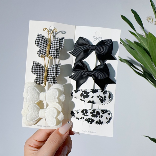 8 Pçs Meninas Quatro Estilos De Grampos De Cabelo Com Laço De Camada Dupla E Clipes BB Impressos Conjunto Crianças Acess