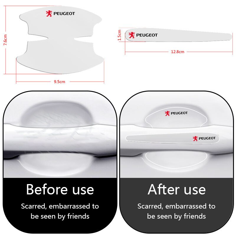 8 Peças Para Peugeot Do Carro Película De Proteção Maçaneta Da Porta Decalque Etiqueta Transparente Peugeot 206 208 207 307 308 2008 3008 508 408 5008 406