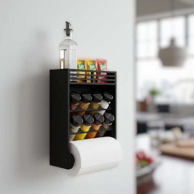 8 Porta Tempero Parede Madeira Suporte Papel Toalha Tampa Dosadora Dupla Decoração Enfeite