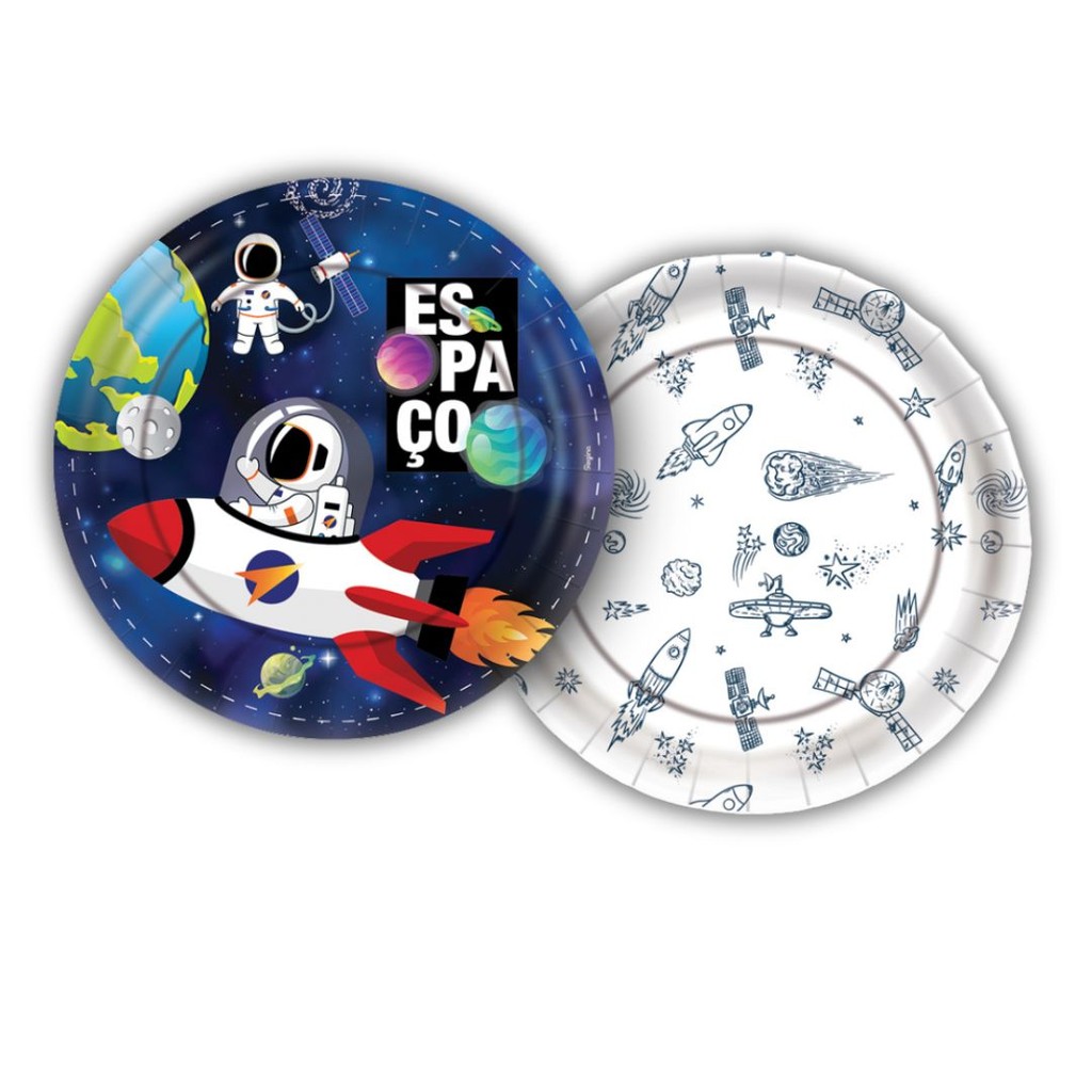 8 PRATO BOLO FESTA ASTRONAUTA ESPACIAL DE PAPEL 18 CM REGINA