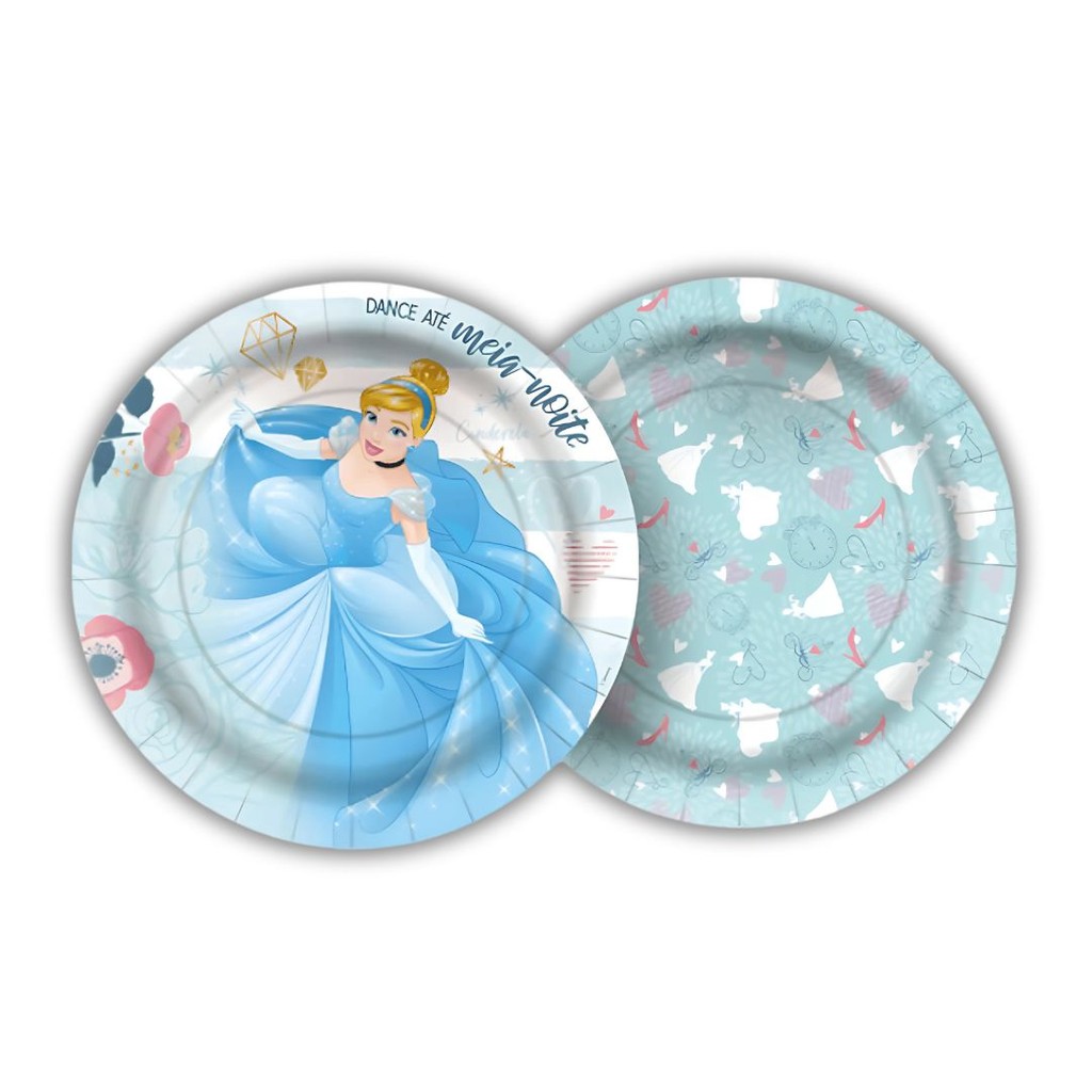 8 PRATO BOLO FESTA CINDERELA DE PAPEL 18 CM REGINA