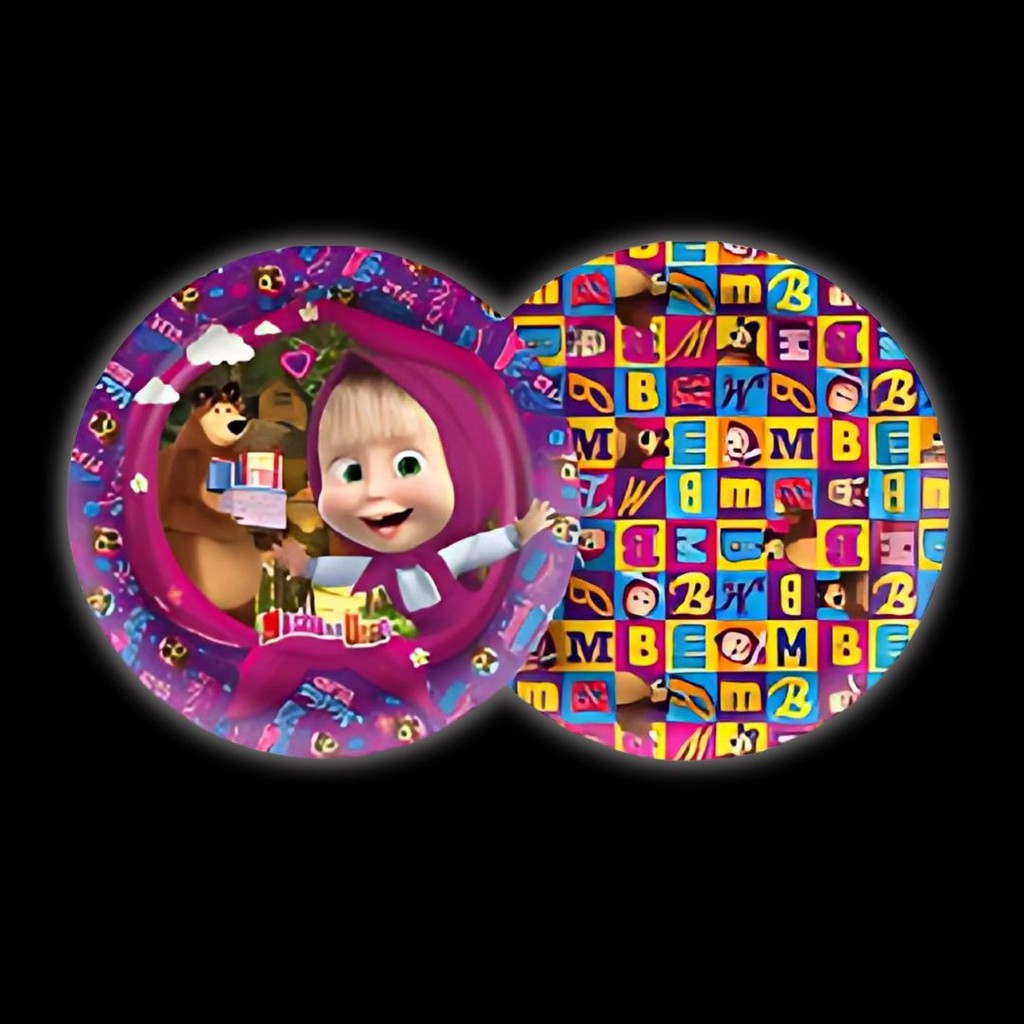 PRATO MASHA E 0 O URSO MEDIDAS: 18 CM PRATOS PARA BOLO E DECORAÇÃO DE FESTA COMPOSIÇÃO: PAPEL FABRICANTE: REGINA PRODUTO LICENCIADO!!!