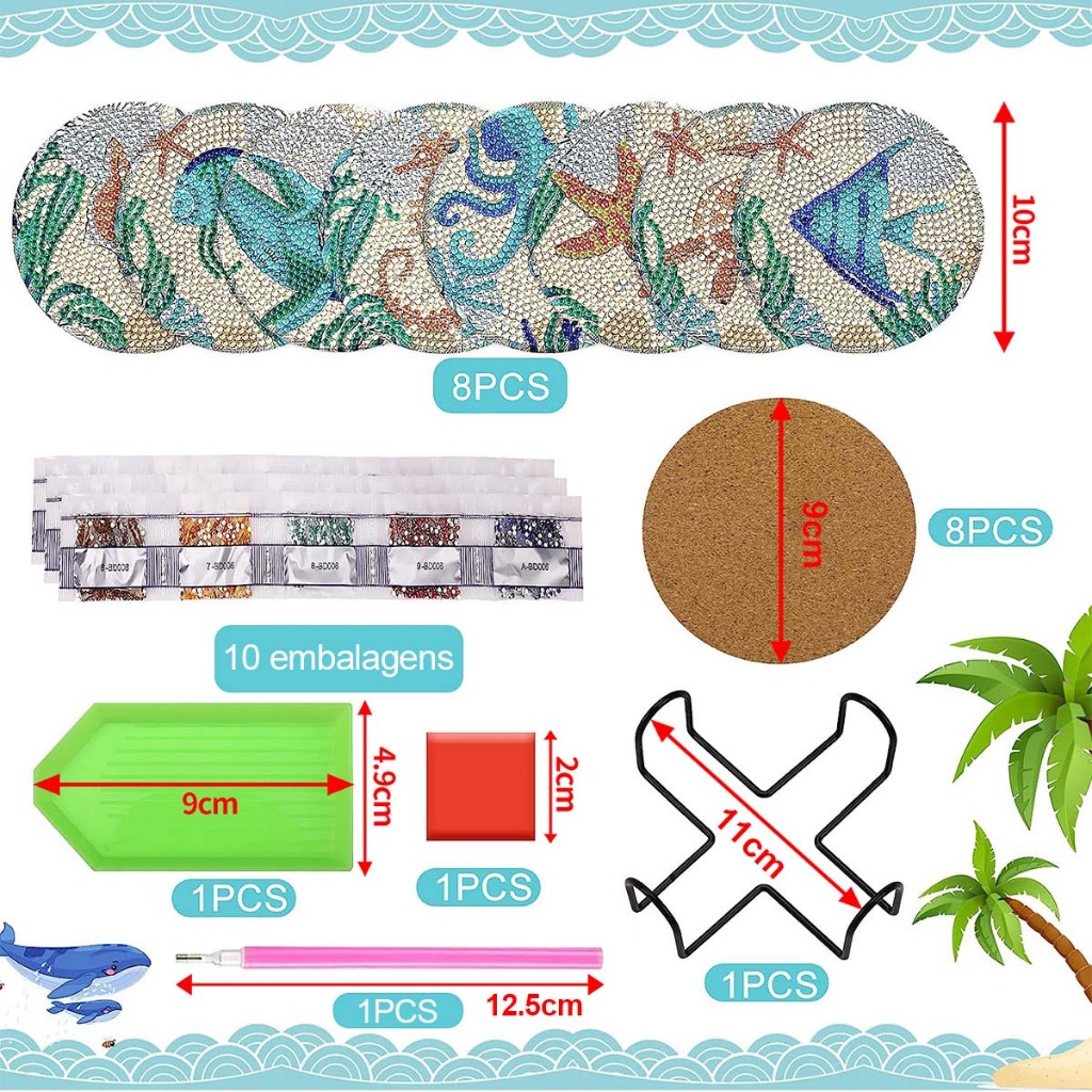 8 x porta-copos para pintura de diamante, porta-copos para arte em diamante, porta-copos para oceano, porta-copos para b