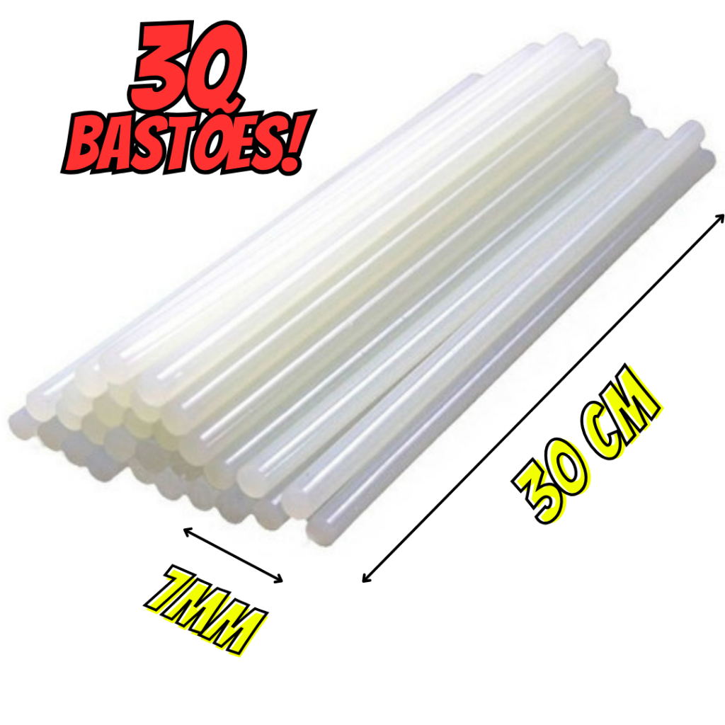 80/40/30/20 ou 10 Bastões de Cola Quente fina Transparente 7,0mm