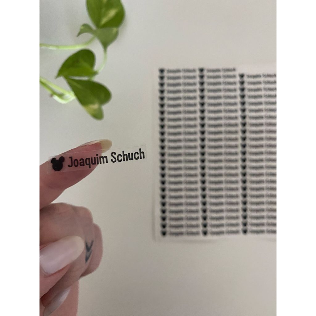 ETIQUETAS ADESIVAS TRANSPARENTE PERSONALIZADAS Indicada para uso em mamadeiras e outros. - Após a compra, enviar o NOME e 1 SOBRENOME no chat em até 24 horas - Letra em cor preta CONTÉM: 80 ETIQUETAS EM VINIL TRANSPARENTE TAMANHO 4,2 cm x 0,8 cm É só destacar e colar ETIQUETAS PRODUZIDAS EM ADESIVO VINIL. PODE MOLHAR QUE NÃO RASGA E NÃO MANCHA. Nossas etiquetas são TOTALMENTE PERSONALIZADAS! Personalizamos com nome e um emoji de sua escolha. Não descola.