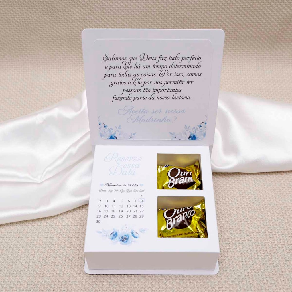 "SURPREENDA, POIS UMA GRANDE FESTA COMEÇA PELO CONVITE” Essa caixa é uma ótima opção para convidar os padrinhos do seu casamento de uma forma elegante. CASO NÃO ENCONTRE O ANUNCIO COM A QUANTIDADE DESEJADA, SOLICITAR LINK PELO CHAT. LOGO APÓS A COMPRA COPIAR A MENSAGEM ABAIXO E ENVIAR NO CAMPO DE MENSAGENS OU NO CHAT IMEDIATAMENTE. NOME DOS NOIVOS: (na sequência desejada na caixa) MODELO DA CAPA: ( ) Iniciais com nome ( ) Nomes ( ) Brasão com iniciais DATA DO CASAMENTO: NÚMERO DA FRASE ESCOLHIDA: ( ) 1 ( ) 2 ( ) 3 ( ) 4 ( ) 5 ( ) 6 CASO QUEIRA ALGUMA FRASE NO SINGULAR INFORMA A QUANTIDADE DE CADA ABAIXO, CASO NÃO SEJA INFORMADO ENVIAREMOS TODOS NO PLURAL ( ) FEMININO ( ) MASCULINO ( ) CASAL A ARTE PARA APROVAÇÃO SERÁ ENVIADA ATÉ 48 HORAS ANTES DO ENVIO, PORTANTO FIQUE ATENTO AO CHAT POIS CASO A ARTE NÃO SEJA APROVADA EM 24 HORAS, A CAIXA SERÁ ENVIADA DE ACORDO COM OS DADOS ENVIADOS E NÃO NOS RESPONSABILIZAMOS POR ERROS. FIQUE ATENTO AO PRAZO DE PRODUÇÃO, DEVIDO A GRANDE DEMANDA NÃO TRABALHAMOS COM URGÊNCIA. ATENÇÃO: A CAIXA NÃO ACOMPANHA OS BOMBONS. A ÚNICA NO SHOPEE QUE ACOMODA SONHO DE VALSA, OURO BRANCO E DEMAIS BOMBONS DE TAMANHO MAIOR. ACOMODA TAMBÉM FERRERO ROCHER, TRUFAS E DEMAIS BOMBONS. Material utilizado: Papel Especial de alta gramatura 240g. Medidas aproximadas da caixa: 12,5 cm comprimento X 12,5 cm largura X 4 cm de altura. Compartimento interno 4,5 cm de comprimento x 4,5 de largura x 4,0 de altura , para 2 bombons. Personalizamos nas cores disponíveis em nosso anúncio As frases disponíveis estão em nosso anúncio. Caso queira alguma alteração consultar pelo chat se é possível antes da compra Acompanha cetim para o laço. NÃO COLOCAMOS NOME DOS PADRINHOS NA CAIXA, CASO QUEIRA PODERÁ ADQUIRIR A TAG EXTERNA EM NOSSA LOJA NO SHOPEE. Caixa de padrinho de casamento amarelo, azul celeste, azul com rosa, azul marinha, azul royal, azul serenity, azul bebê, branco, ahampanhe, coral, dourado, fúcsia, girassol, laranja, lavanda, lilás, marsala, prata, preto, rosa bebê, rosa canela, rosa médio, rosa pink, rose, rose gold, roxo, terracota, Tiffany, tons pastéis, turquesa, verde bandeira, verde esmeralda, verde menta, verde oliva, vermelho.