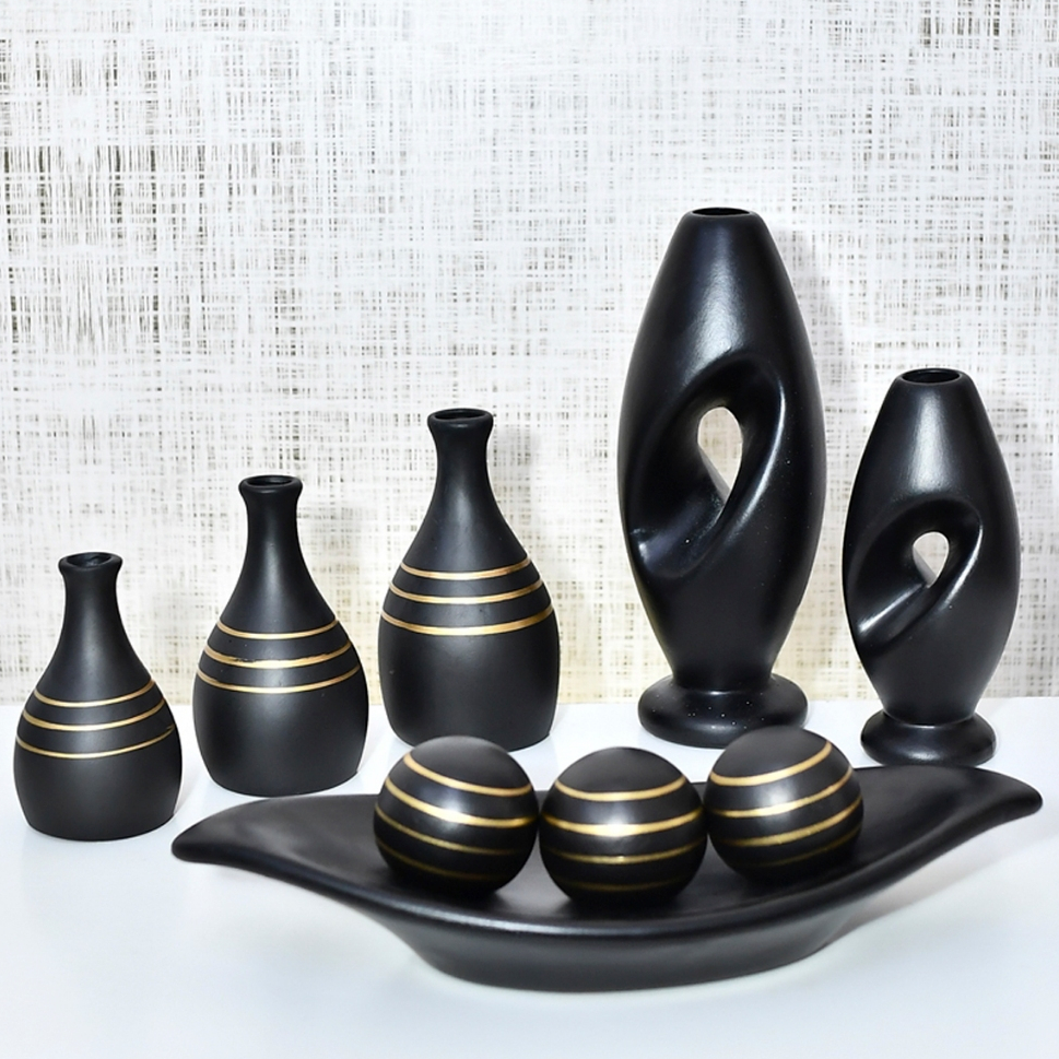9 Vasos Cerâmica Moderno Centro Mesa Decorativo Peças Enfeite Casa para Rack Sala Aparador Conjunto