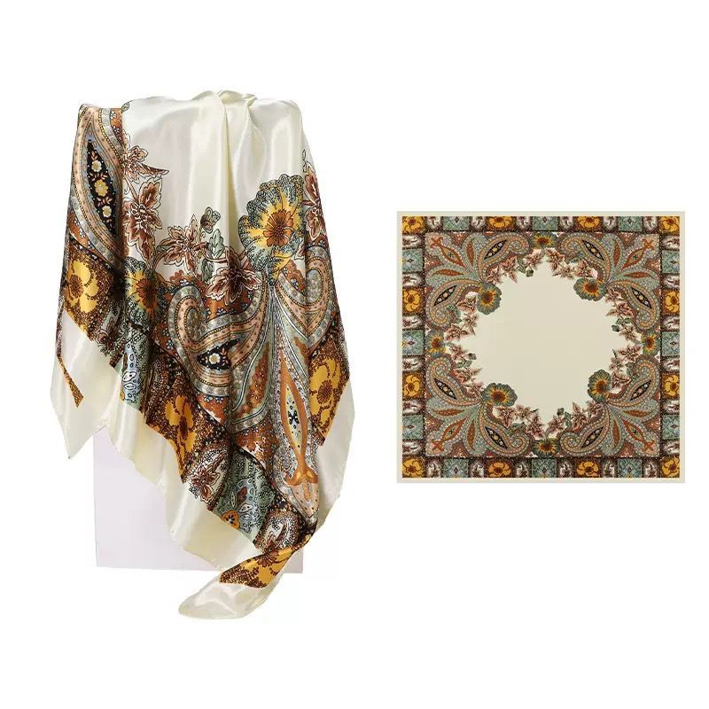 90x90cm Lenço Cetim Cabeça Pescoço de Seda Cetim Padrão Retrô Super Moda Varias Cores