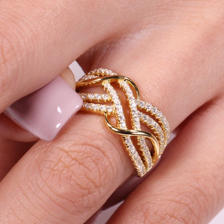 925 Prata Esterlina Multi Cruz Design Cor De Ouro Anéis Femininos Para Casamento Luxo Pavimentado Acessórios Requintados