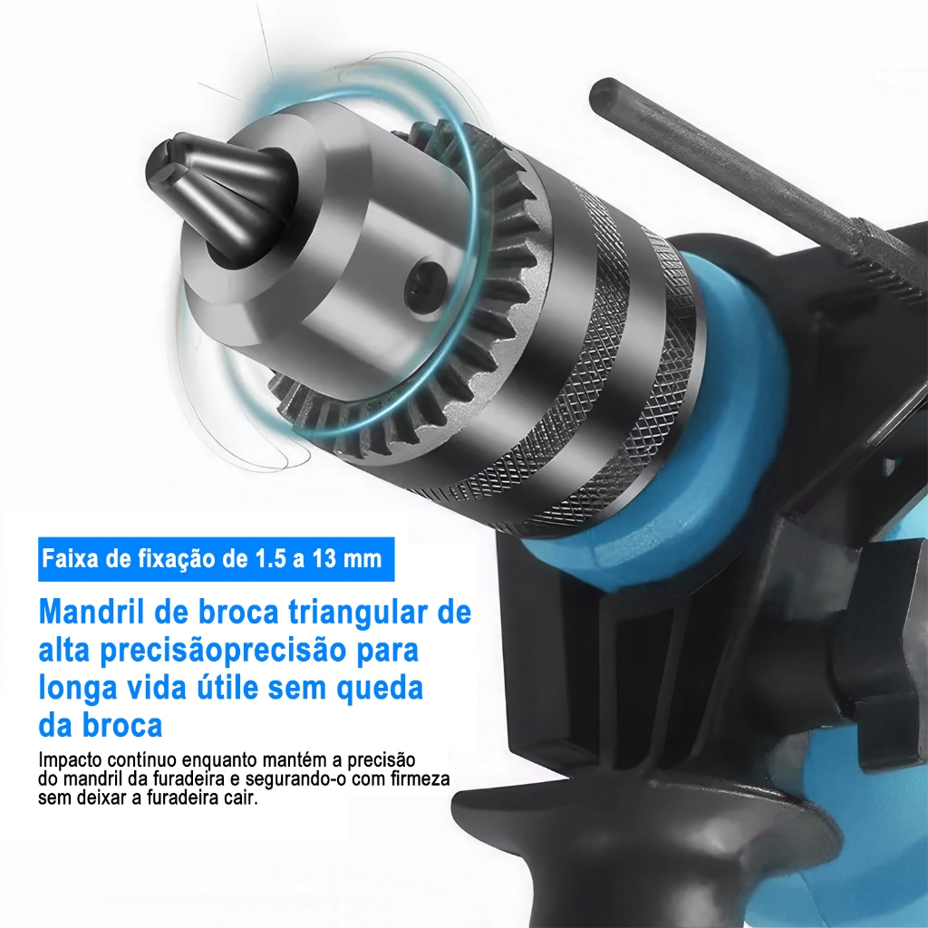 950w Furadeira E Lixadeira 13mm Dobevi 3 Em1 Multiferramenta 21 Acessórios Martelo elétrico sem escova Motor de alta potência de 950 W Esta furadeira de impacto sem fio apresenta 4J de força de impacto e um motor sem escovas que garante um desempenho potente e durabilidade duradoura. Faça furos com facilidade em velocidades de até 3200 RPM e 10.000 IPM para uma ampla variedade de materiais. O motor fornece energia de impacto potente para trabalhos pesados em concreto, alvenaria e metal. O motor de fio de cobre resistente ao calor permite longas horas de operação sem queimar. Conjunto de ferramentas de 3 peças: Esse conjunto de ferramentas elétricas inclui 1 rebarbadora angular de lítio de 950W, 1 martelo de lítio de 950W e um conversor de motosserra, perfeito para decoração, montagem de móveis, perfuração, corte, jardinagem, escritório ou manutenção doméstica diária. Adequado para perfurar, parafusar, cortar, lixar, polir tudo, muito potente! A furadeira perfeita Pesando apenas 2,5 kg, essa ferramenta versátil alterna rapidamente entre os modos de furadeira de impacto, furadeira e cinzel para uma variedade de tarefas. O absorvedor de choque integrado reduz a vibração e a fadiga. O projeto de proteção da embreagem segura garante que o martelo possa suportar um alto torque no pulso; empunhadura ajustável de 360 graus com punho texturizado para operação e conforto ideais; o sistema de mandril Sds-Plus permite trocas de bits sem interrupções e sem ferramentas para um trabalho ininterrupto. Alça giratória de 360 graus para maior segurança e proteção: Interruptor de velocidade contínuo, de acordo com suas próprias necessidades de potência. A embreagem de segurança é desengatada automaticamente quando objetos duros são encontrados, evitando que a máquina role para trás e cause ferimentos. A alça giratória de 360 graus pode ser adaptada de forma flexível às necessidades de diferentes cenários. O martelo elétrico adota um design de dissipação de calor com vários orifícios, que pode proporcionar um resfriamento rápido e proteger o motor com eficiência. Esmerilhadeira angular sem escova Até 950watts, 12.000 RPM de excelente potência O motor sem escova da esmerilhadeira angular de 21V fornece até 12.000 RPM para uma variedade de aplicações, como corte, polimento e esmerilhamento de metal, tijolo, azulejo e madeira. O motor sem escovas de 950W de alta potência proporciona vida útil mais longa, mais potência, menor consumo de bateria, operação mais silenciosa da máquina e um ambiente de trabalho mais seguro. Conjunto completo de acessórios Use o tamanho de disco mais comum (5 polegadas e 125 mm). O produto inclui uma variedade de acessórios, 3* discos de corte, 1* disco de lixamento, 1* lâmina de serra para madeira. Não é preciso se preocupar com a compra. Inclui acessórios para lixamento de metal, corte de metal, polimento de metal, corte de madeira, lixamento de madeira e muito mais. Poderosas 3 opções de velocidade de potência A esmerilhadeira angular sem fio com 3 opções de velocidade a 12.000 RPM fornece a potência ideal para aplicações profissionais de corte e lixamento. Execute rapidamente o corte de metais, o acabamento de superfícies, o polimento de madeira, a remoção de revestimentos e muitos outros trabalhos. Perfeita para metalúrgicos, encanadores e outros profissionais que usam esmerilhadeiras todos os dias. Proteção de segurança aprimorada A proteção metálica ampliada é fixada com uma placa de pressão para evitar a projeção de faíscas e conta com proteção contra sobrecarga e sobrecorrente para oferecer proteção multidirecional. Design ergonômico Pesando apenas 3 kg com baterias, o design sem fio elimina a restrição de cabos de alimentação e o incômodo de enrolar cabos, tornando-o fácil de transportar e adequado para uso em ambientes internos e externos. Possui uma alça auxiliar antiderrapante de 2 posições para máxima flexibilidade e conforto. A alça é ajustável para atender a usuários destros e canhotos e o design antiderrapante garante uma pegada firme. Tamanho universal Essa ferramenta de esmerilhamento de 125 mm foi projetada com um rebolo ultrafino de 0,045”. A trava do eixo em nossas ferramentas de esmerilhadeira angular torna a troca dos rebolos rápida e fácil. Conversor de motosserra elétrica: ABAIXO E CABO DE SEGURANÇA: A aba de metal separa a parte de trabalho do cabo para evitar respingos de serragem e oferece proteção total para suas mãos com metal resistente ao desgaste. A alça confortável foi projetada com estabilização antiderrapante, o que permite evitar oscilações durante a operação. Robusto - O suporte em uma única peça é forjado em aço laminado a frio para proporcionar precisão e espessura uniforme. 22 dentes de corrente de alta qualidade proporcionam excelente dureza e resistência ao desgaste para um corte rápido e suave. SEM NECESSIDADE DE MONTAGEM - A motosserra elétrica vem montada para uso com uma esmerilhadeira angular. Não é necessário instalar a corrente separadament