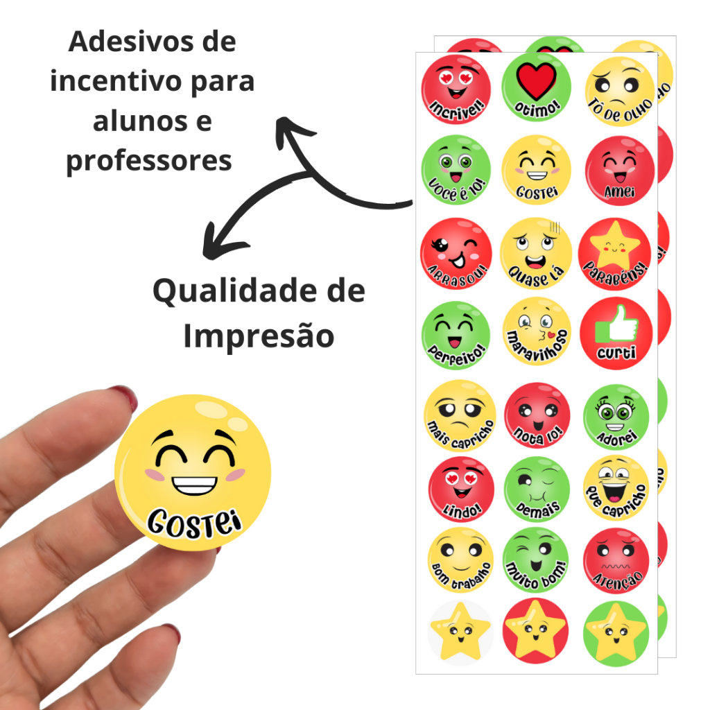❗ Não modificamos a arte, entregue conforme a foto do anuncio ❗ ✅ Cartela com Etiquetas Adesivas. Conteúdo: Pacotes com 96 etiquetas enviadas em cartelas. Material: Couche Adesivo cola forte Tamanho: 2 cm Redondo Impressão com Verniz UV para dar proteção e brilho. ✔️ Modelo: Adesivos de Incentivo para cadernos, livros, alunos e professores. ✅ Fabrica Própria. ✅ Envio Imediato.