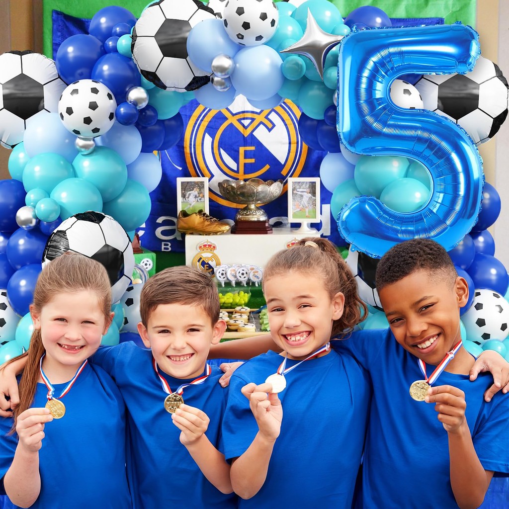 97 Pçs Balões Temáticos De Futebol Arco Guirlanda Kit Menino Decoração Aniversário 32 Polegada Número Azul Chá De Bebê E