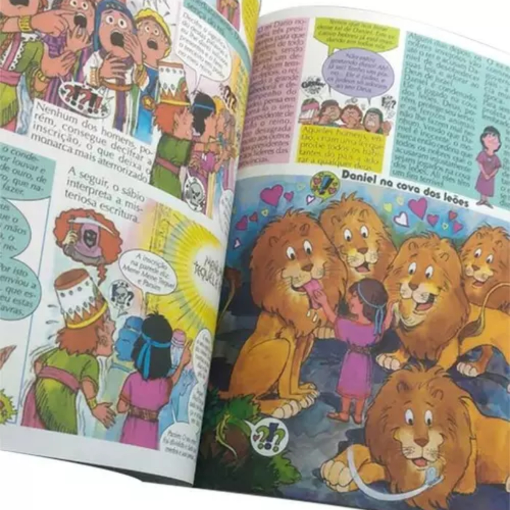 As histórias da Bíblia são apresentadas com uma infinidade de desenhos super coloridos e bem humorados, que prendem a atenção de qualquer leitor infantil. A garotada vai poder viajar por mais de 400 páginas desenhadas a mão. Não se surpreenda se, em pouco tempo, elas começarem a contar as mais fantásticas histórias bíblicas em detalhes!Número de páginas 448