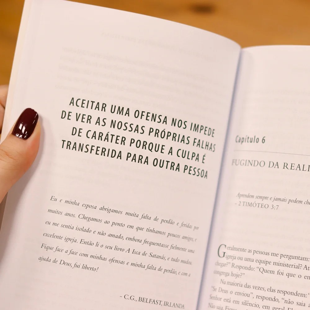 Escape da armadilha mortal do inimigo. a isca de satanás expõe um dos laços mais enganosos que satanás utiliza para tirar os crentes da vontade de deus – a ofensa. A maioria das pessoas que é presa pela isca de satanás nem sequer percebe isso. não se deixe enganar. A ofensa o alcançará, mas a forma como ela afetará o seu relacionamento com deus depende de você. A sua reação determinará o seu futuro. Se a ofensa for tratada forma correta, você se tornará mais forte em vez de se tornar uma pessoa amarga. nesta edição de 10º aniversário do seu best-seller, john bevere revela como ficar livre da ofensa e escapar da mentalidade de vítima. Com mais de 400.000 cópias publicadas, este livro inclui testemunho de pessoas transformadas que leram o livro original, além de apresentar um texto novo e fresco, contendo as mesmas verdades que transformaram tantas vidas. você encontrará respostas a perguntas difíceis como: por que costumo contar sempre o "meu lado" da história? como posso combater pensamentos de suspeita e desconfiança? o que posso fazer para deixar de relembrar os sofrimentos do passado? como posso recuperar a confiança depois de ter sido profundamente ofendido? este livro o ajudará a escapar da armadilha do inimigo e lhe dará o poder para ser liberto da ofensa, deixando-o livre para viver um relacionamento com Deus. Título: A Isca de Satanás Subtítulo: Escape da armadilha mortal do inimigo Autor(es): John Bevere Capa: Brochura Acabamento: Laminação Fosca Páginas: 196 Peso: 0,340 kg ISBN: 9788599858196 Editora: Lan Editora