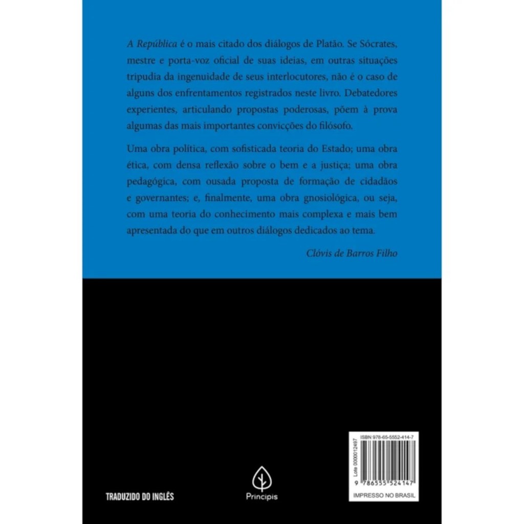 A República | Edição comentada por Benjamin Jowett | Platão Apresentado na forma de um diálogo entre Sócrates e três diferentes interlocutores, este texto clássico é uma investigação sobre a noção de uma comunidade perfeita e o indivíduo ideal dentro dela. Durante a conversa, outras questões são levantadas: O que é o bem? O que é realidade? O que é conhecimento? A República também aborda o propósito da educação e o papel das mulheres e dos homens como guardiães do povo. Com notável lucidez e hábil uso da alegoria, Platão chega a uma representação de um estado limitado pela harmonia e governado por reis filósofos. Esta versão, traduzida da língua inglesa e comentada por Benjamin Jowett, é inédita no Brasil e traz uma análise bastante completa da obra de Platão. SOBRE O AUTOR: Platão é um filósofo grego clássico, matemático, aluno de Sócrates, escritor de diálogos filosóficos e fundador da Academia de Atenas, a primeira instituição de ensino superior no mundo ocidental. Junto com seu mentor, Sócrates, e seu aluno, Aristóteles, Platão ajudou a lançar as bases da filosofia e da ciência ocidentais. Considerado um dos filósofos ocidentais mais importantes, exerceu influência sobre praticamente todas as figuras da filosofia depois dele. Seu diálogo A República é conhecido como o primeiro trabalho abrangente sobre filosofia política. Título: A República | Edição comentada por Benjamin Jowett Autor: Platão Páginas: 640 Capa: Brochura Dimensões: 16 x 23 cm Editora: Ciranda Cultural