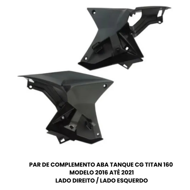 ITENS DO ANUNCIO: * 1 PAR ABA TANQUE COM ADESIVO * 1 PAR COMPLEMENTO ABA TANQUE * APLICAÇÃO: HONDA CG TITAN 160 PRATA IBIUNA 2019 *****QUALIDADE GARANTIDA***** *TODOS OS NOSSOS PRODUTOS SÃO NOVOS COM GARANTIA DE 3 MESES CONTRA DEFEITOS DE FABRICAÇÃO *DÚVIDAS ENTRAR EM CONTATO PELO CHAT