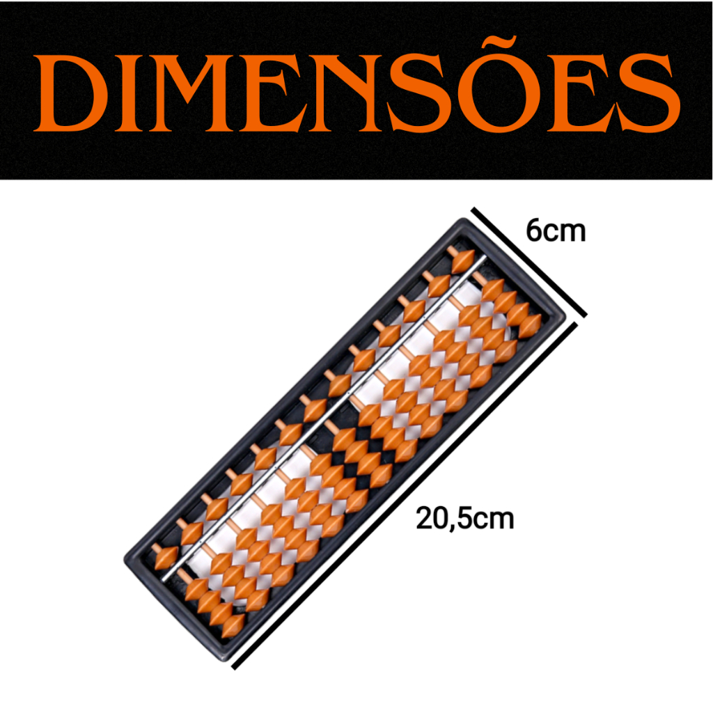 ABACO COM 13 DIGITOS - 20,5CMX6CMX1,7CM DESCRIÇÃO: • Peso: 0.1kg • Altura: 20.5cm • Largura: 6cm • Profundidade: 1.7cm • Origem: China • Material : ABS • Pronta entrega • Foto Original do Produto