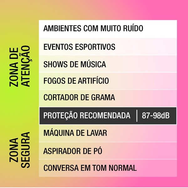 Desfrute de concertos de música, festivais, fogos de artifício, desporto motorizado e atividades ao ar livre em família sabendo que a audição dos seus filhos está protegida e em segurança com o Protetor Auricular Infantil 3M PELTOR Kids. Proteção auditiva confortável e eficaz concebida para utilizadores mais jovens com mais de 5 anos O verde néon é altamente visível e aumenta a segurança Maior conforto e uso agradável com almofadas largas e macias, ajudando a reduzir a pressão e a acumulação de calor Design de baixo perfil das câmaras e exclusivo design de baixo perfil do diadema Leve e com ajuste de baixa pressão Reutilizável e fácil de manter limpo com almofadas e inserções substituíveis Reduz o nível de ruído até 27 dB Nível de proteção: reduz o nível de exposição ao ruído em 27 dB e pode ser utilizado numa gama de níveis de ruído de 87-98 dB, cobrindo uma vasta gama de aplicações Em conformidade com a norma europeia EN 352-1:2020 (CE 0598, UKCA 0120)