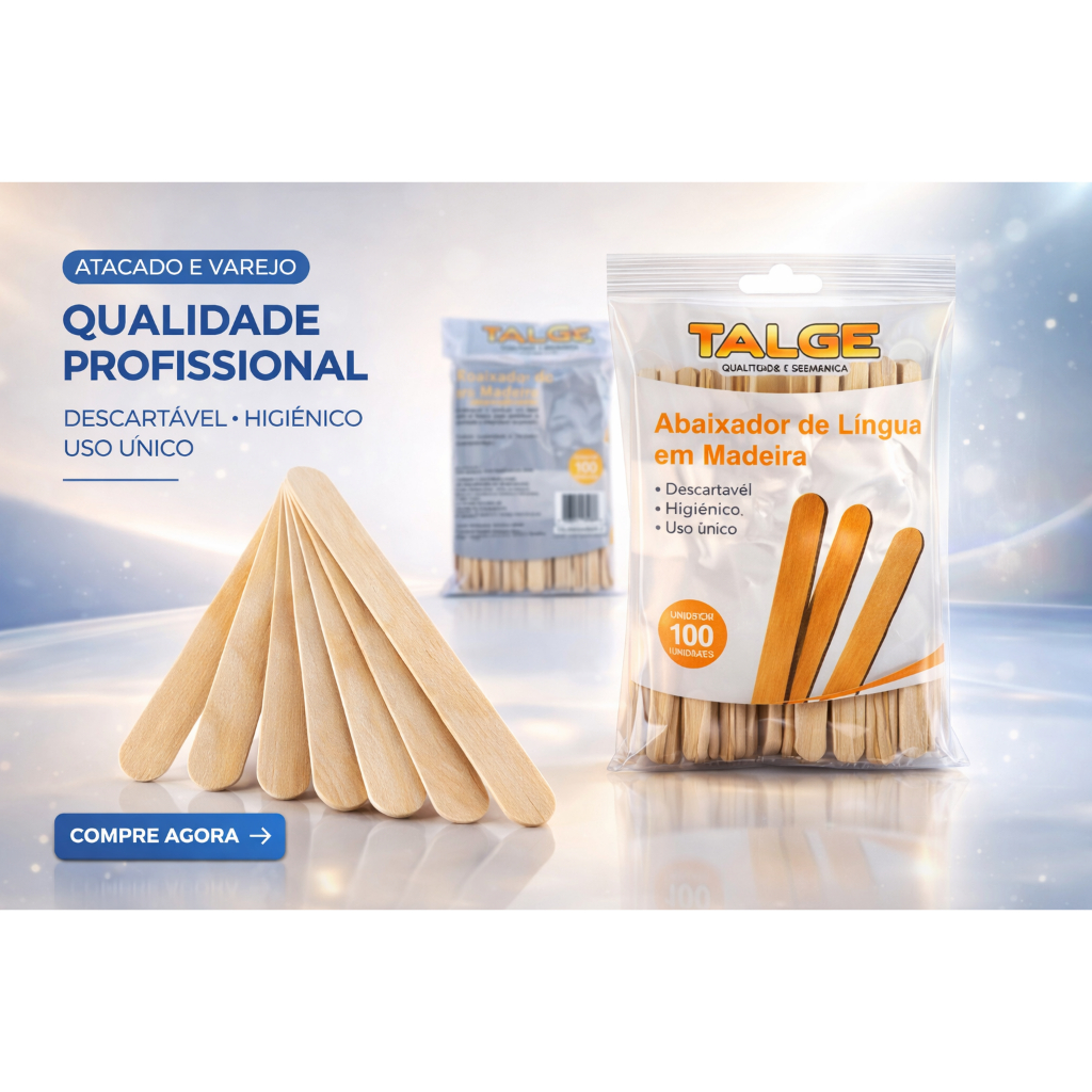 **** ABAIXADOR DE LÍNGUA EM MADEIRA COM 100 UNIDADES TALGE **** Abaixadores de língua em madeira de reflorestamento. Não estéreis, descartáveis e de uso médico. Uso único. VANTAGENS E BENEFÍCIOS • Resistente. • Não solta farpas. • Não agride o meio ambiente ao ser descartado após a utilização. • Descartável e estéril. • Pontas arredondadas. APLICAÇÕES E INDICAÇÕES Indicados para uso médico, exames em clínicas e hospitais. Permite boa visualização de boca, garganta e órgãos circunvizinhos. Realizar assepsia prévia das mãos, retirar o abaixador de língua da embalagem e executar o exame. Após o uso, descartar devidamente em local apropriado. DIFERENCIAIS E BENEFÍCIOS • Registro Anvisa/ms: 80605419004. • NCM: 4421.91.00. • Comprimento: 14cm. • Largura: 1,6cm. • Espessura: 1,6mm. • Pacote (plástico): 100 unidades. • Armazenagem: Manter em local limpo, seco, fresco, protegido da luz, da umidade e calor excessivo. • Validade: Indeterminada. • Composição: Madeira. • Marca: Talge. ----- Para mais duvidas nós da Napoli Descartáveis estaremos a disposição de ajuda-los.