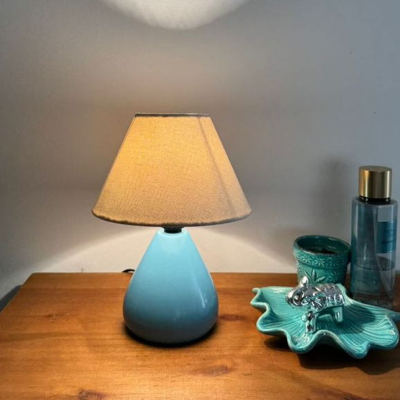 Abajur Luminaria de Ceramica Porcelana Gota Bivolt Com Cupula Tecido para Decoração Quarto Escritorio Decoração Cores
