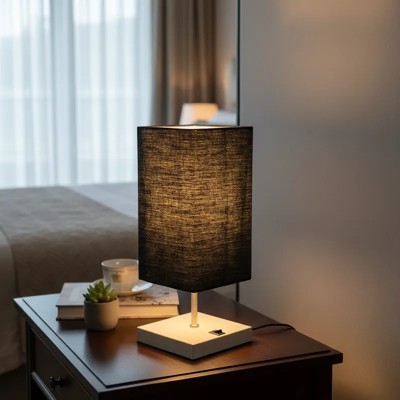 Abajur luminária de Mesa Quadrado Moderno Elegante Com Interruptor e Cúpula Decoração iluminação Casa Sala Quarto